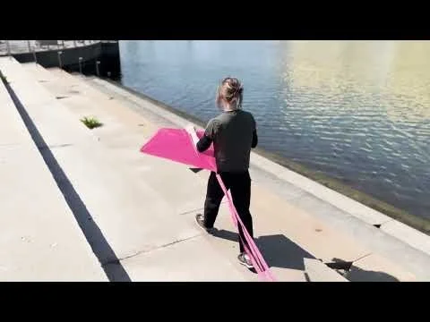 Superfun(d) Pink kite, Newtown Creek Nature Walk, 2024, Performance by Jamie Gustavson - Video documentation shot and edited by William Burris